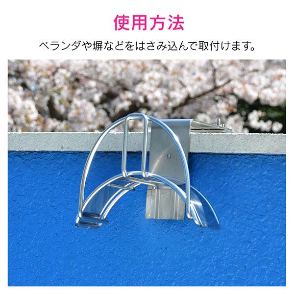 ベランダや外溝の塀をはさみ込んで取付け、ホースを掛けることができるのでスッキリ片付きます。