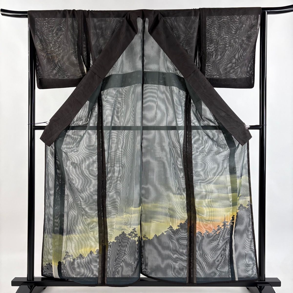 付下げ 身丈158 cm 裄丈67 M 紗袷 シルエット 夕焼け 焦茶色 正絹
