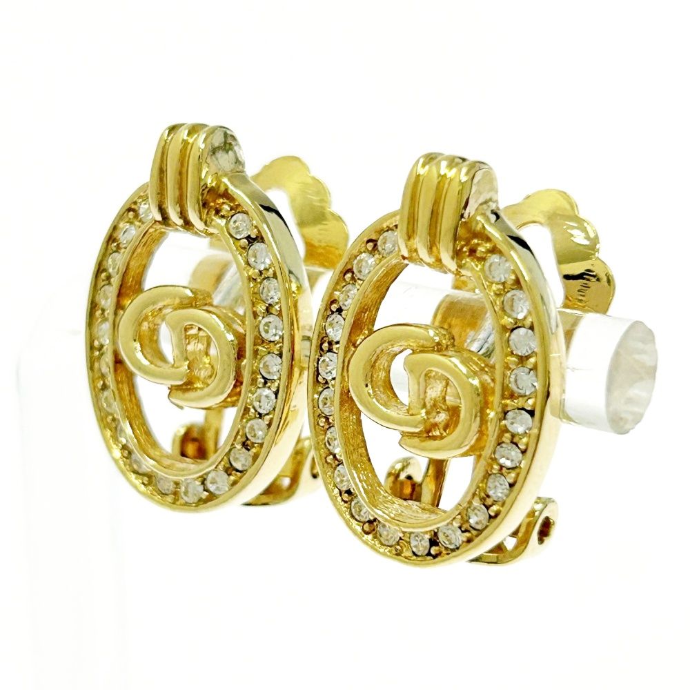 Christian Dior クリスチャンディオール GP ラインストーン CDロゴ イヤリング レディース ゴールド 491800