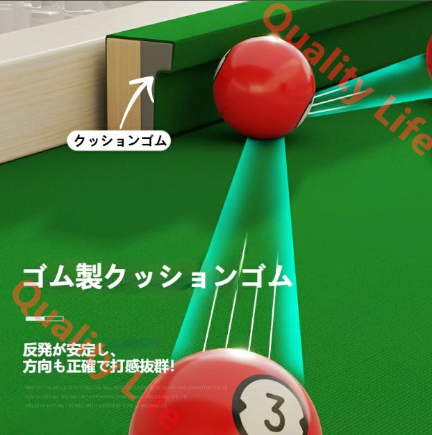 高反発クッションゴムと高速ビリヤードクロスで、滑らかな走球と正確なコントロールを実現