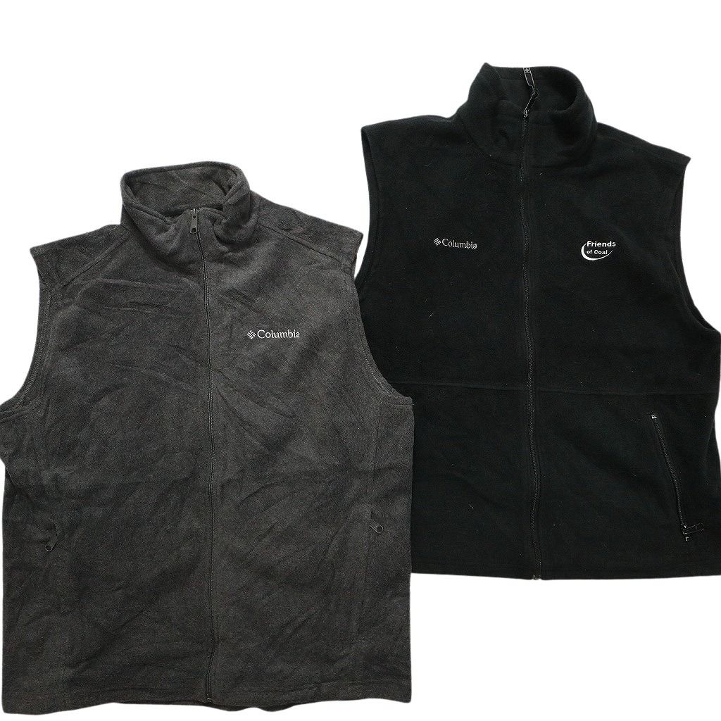 古着卸 コロンビア フリース ベスト セット メンズ L フルジップ 刺 ジップポケット ブラック 古着 NC 2693