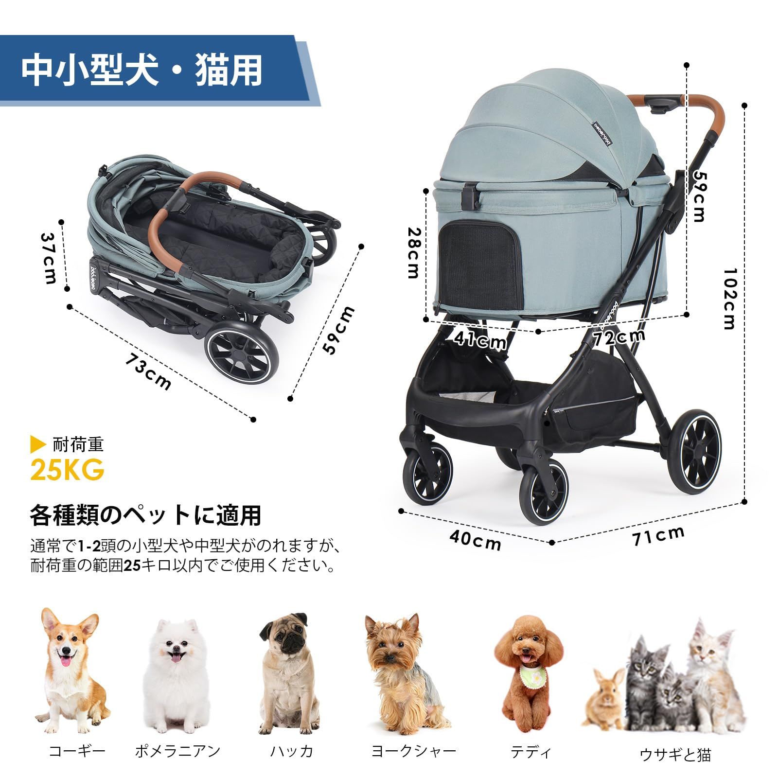 BEBEROAD PETS&2025年春夏新作:T5はオールインワンのペットカートです。ペット キャリーカートは主要部にベビーカー用アルミフレームを使用し、強度と軽さを実現。25KGまでの耐荷重、中小型犬や多頭飼いのペットに最適!