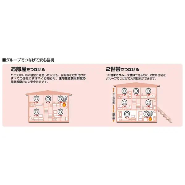 ■無線連動だからひとつが鳴れば家中に火災をお知らせ
