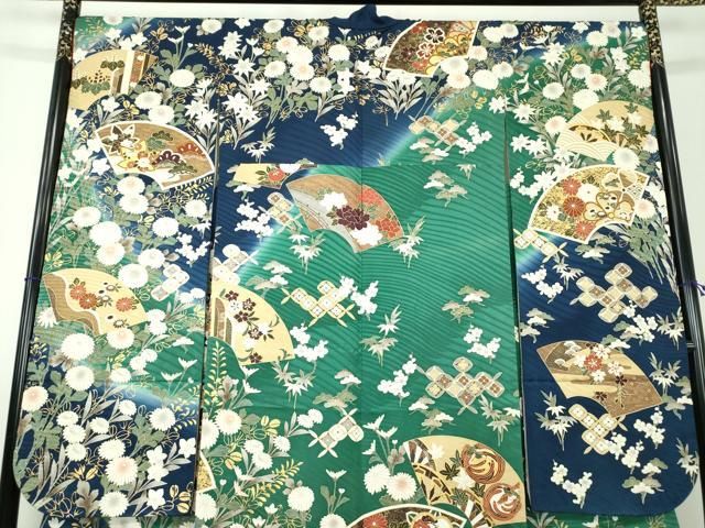 平和屋着物 豪華振袖 駒刺繍 地紙鳳凰花文 暈し染め 金彩 正絹 ps