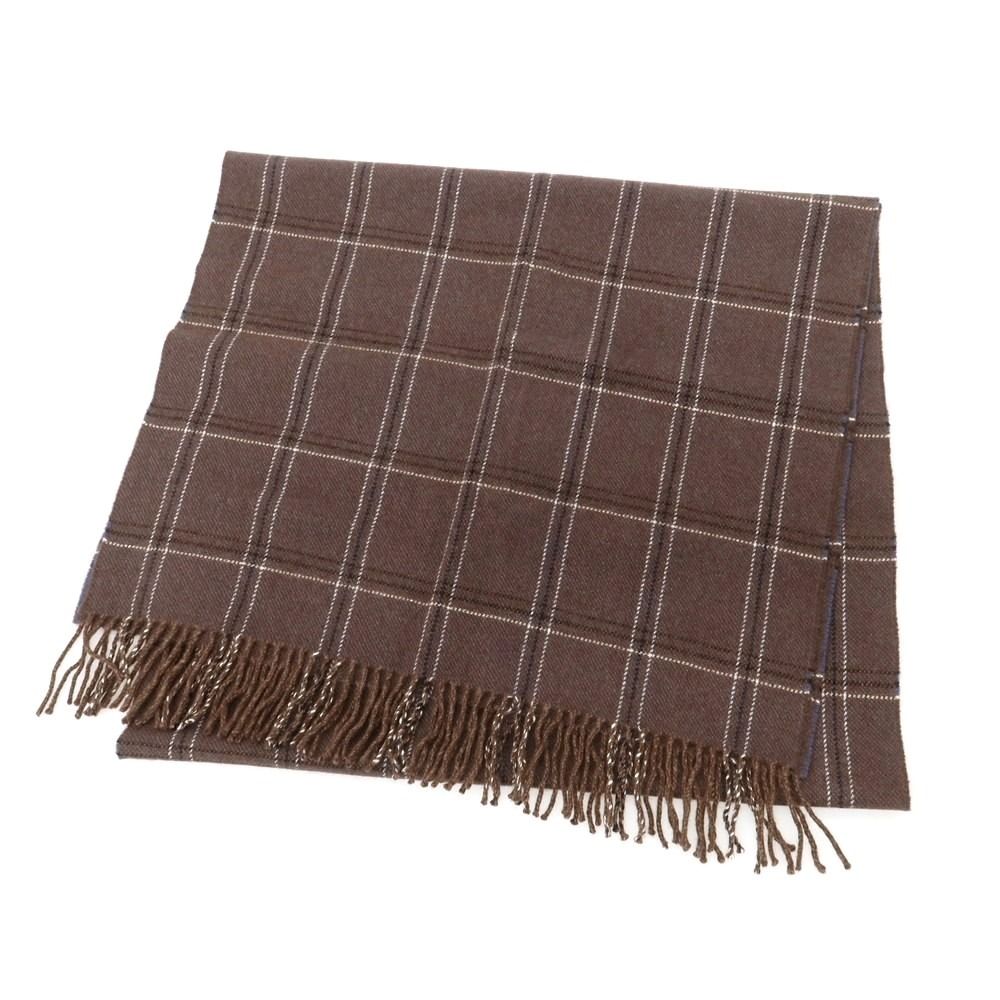 ジョンストンズ JOHNSTONS カシミヤ チェック マフラー ブラウンxホワイト メンズ