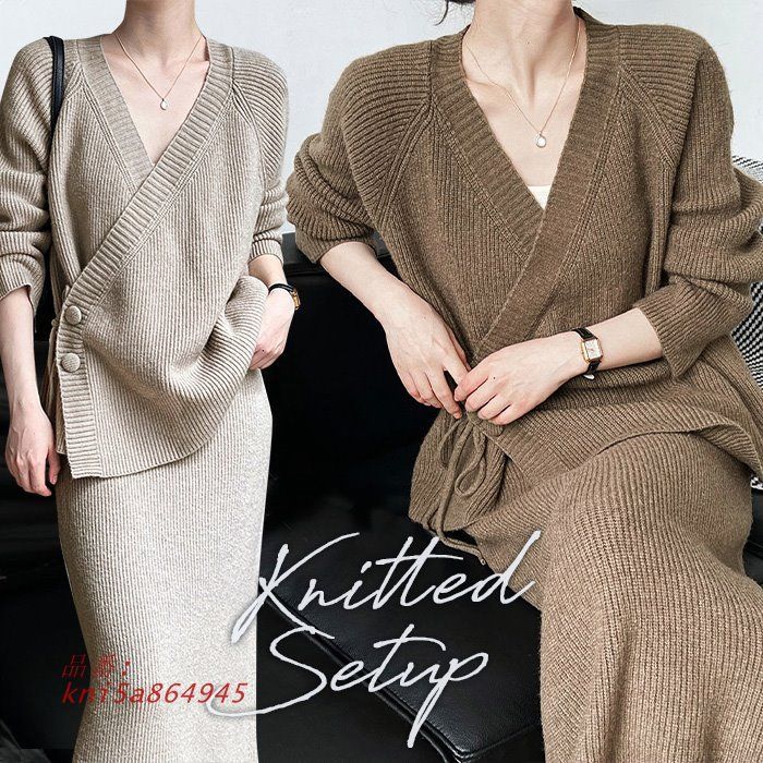 ニット セットアップ スカート カーディガン レディース 上下セット カジュアル 40代 タイト カシュクール きれいめ リブニット 20代 30代 kni 5 a 864945