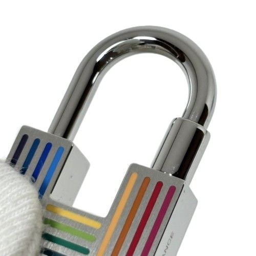 HERMES エルメス クイズ レインボー カデナ キーリング メタル ラッカー シルバー マルチカラー アクセサリー ブランド小物 キーホルダー Hモチーフ チャーム 南京錠 81233