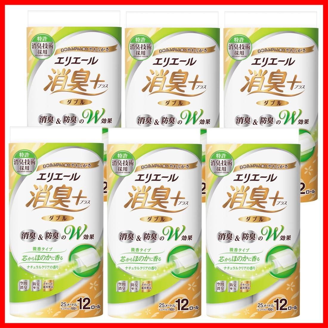 エリエール トイレットペーパー 消臭プラス(+) 25m×72ロール(12ロール×6パック) ダブル パルプ100% ほのかに香る ナチュラルクリアの香り 【ケース販売】