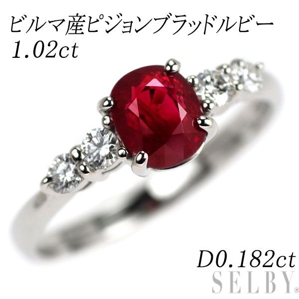 Pt 900 ビルマ産ピジョンブラッド ルビー ダイヤモンド リング 1.02 ct D 0.182