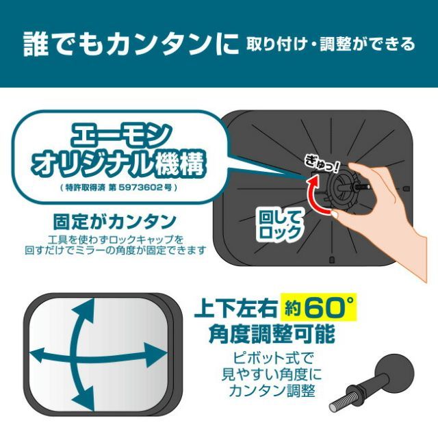 ◆工具を使わずロックキャップを回すだけでミラー角度が固定できる