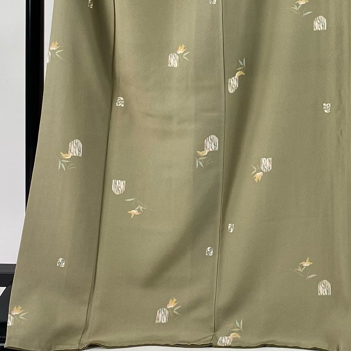 小紋 身丈172 cm 裄丈66 M 袷 葉柄 鳥 灰緑 正絹 秀品