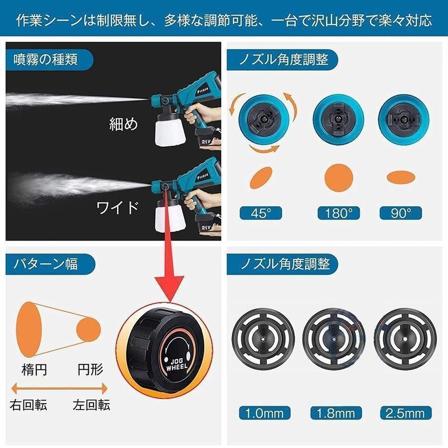 スプレーガン 電動 マキタ 18 Vバッテリー互換対応 塗装ガン 塗料 パワースプレー 互換製品 ノズル4幅調整 バッテリー 充電器 別売 18ボルト 14.4ボルト 1