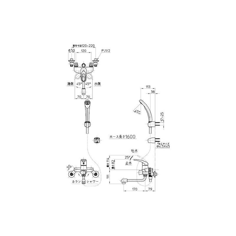 SANEI サンエイ シングルシャワー 混合栓 浴室用 パイプ長さ170mm リングレバー 蛇口 浴室水栓 壁付 1