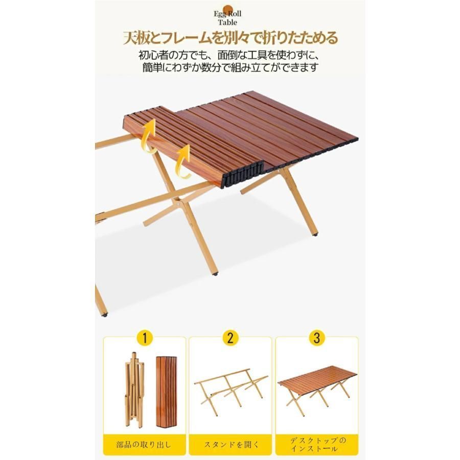 バランスの取れた脚の固定方法で、軋み音を軽減。ロール式天板と組み立て式フレームでコンパクトに収納でき、付属の収納バッグで持ち運びも便利です。