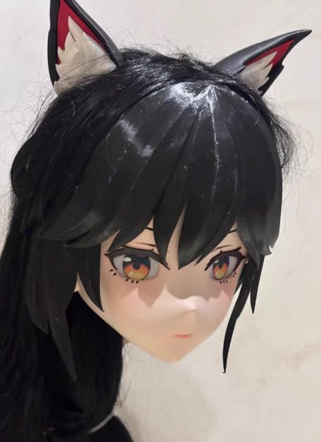 全頭マスク ロック付き NO.1187 カツラ付き フルマスク ドール ヘッドロリータ人形 コスプレ 変身 仮装 着ぐるみ 二次元美少女