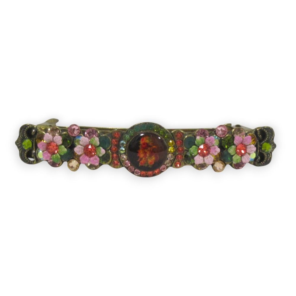 【商品名】Michal Negrin ミハエルネグリン 猫 キャット フラワーモチーフ ビジュー バレッタ ヘアアクセサリー マルチカラー×ゴールド