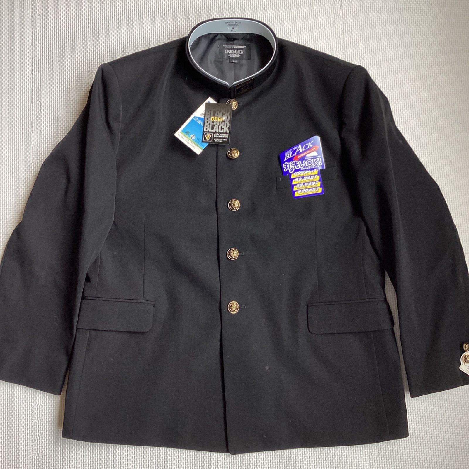 男子 学生服 170B 襟 1808 学生 学ラン 詰襟 標準型 ポリエステル80% 毛20% UNIONJACK DEEPBLACK