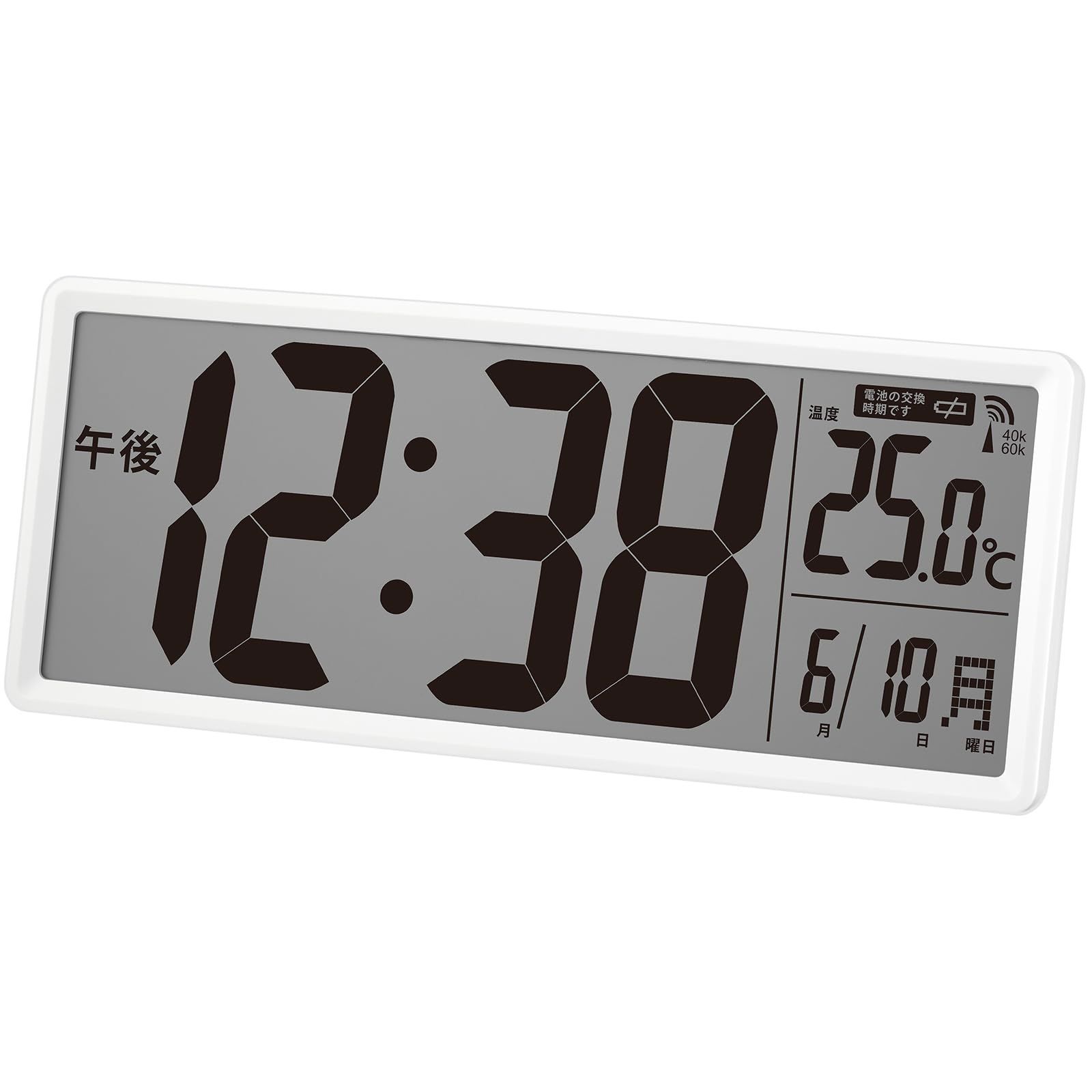 PatternName デジタル_Style W-814 MAG マグ 掛け時計 壁掛け時計 置き時計 デジタル 電波時計 温度計 シンプル インテリア リビング カウンター 大型 大きい 縦約15×横約36㎝ 置き掛け兼用 ホワイト クリアビュー W-81