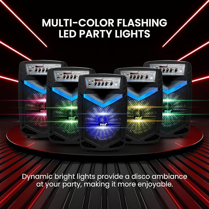 Pyle 400 W Bluetooth付き ワイヤレス スピーカー 充電式バッテリー 屋外で使える 重量3.1 kg. 8インチ サブウーファー 1インチ ツイーター付き 携帯用 PA システムスピーカー 録音機能 カラオケスピーカー マイク DJ 1