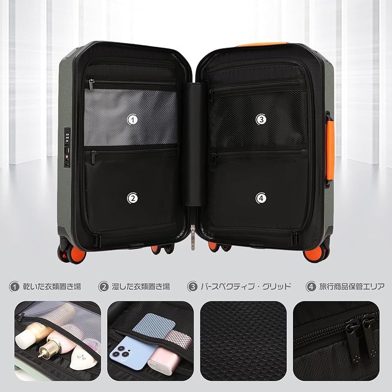 商品名:[GGQAAA] キャリーケース トップオープン USB充電 多機能 アルミフレーム TSAロック ダブルキャスター ファッション (Army Green, 24インチ/4-6泊/66*44*27cm)