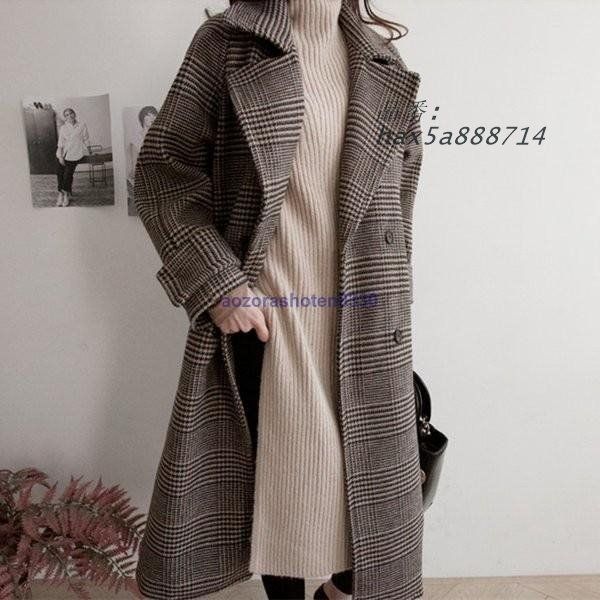 レディース チェスターコート アウター ロングコート チェック柄 ダブルブレスト カジュアル OL オフィス 大人 通勤 コート スーツ風 hax 5 a 888714