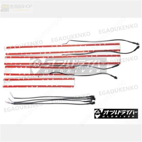 商品内容: LEDパフォーマンスドアスカッフプレート1台分 (フロント部分左右2枚、リア部分左右2枚、合計4枚セット) LEDカラー:白 ホワイト 材質:アクリル (鏡面メッキ仕上げ)
