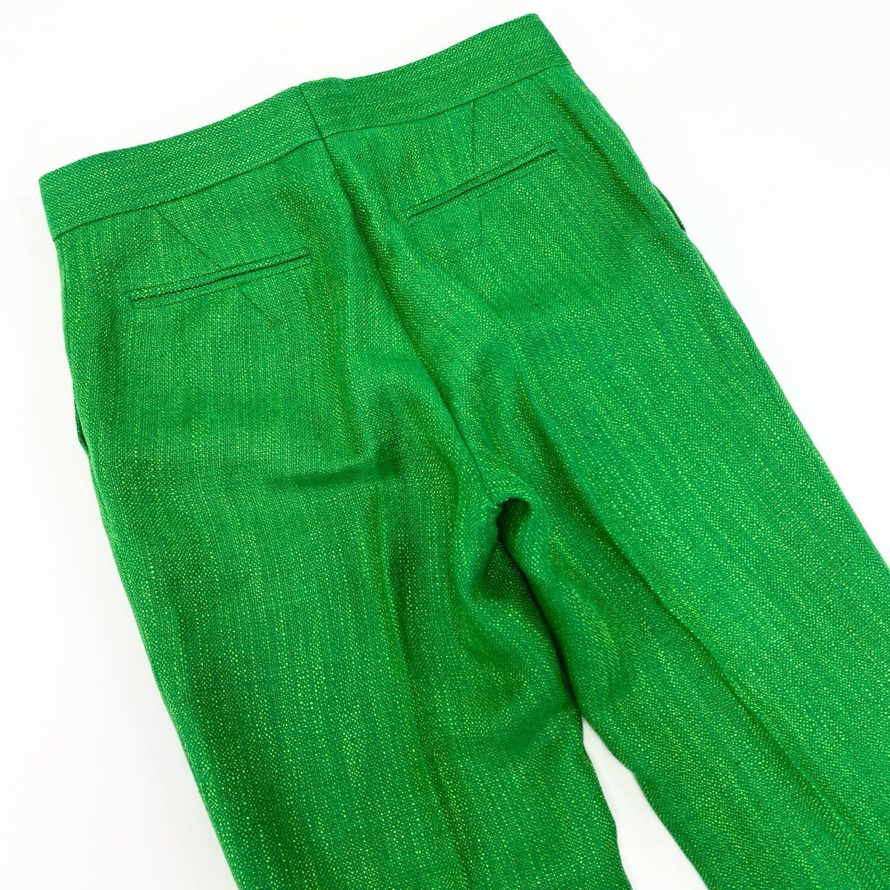 鮮やかなエメラルドグリーンが目を惹く、ドゥロワーのオットマンベーシックパンツ(モデル番号:6514-236-1203)。微光沢のあるリネン混オットマン生地が、ナチュラルさと上品さを両立しています。センタープレス入りの美しいストレートラインで脚をすらりと見せ、ジャケット合わせにも映える洗練された一本。軽やかで通気性が高く、春夏のオフィススタイルやリゾートシーンにもおすすめです。