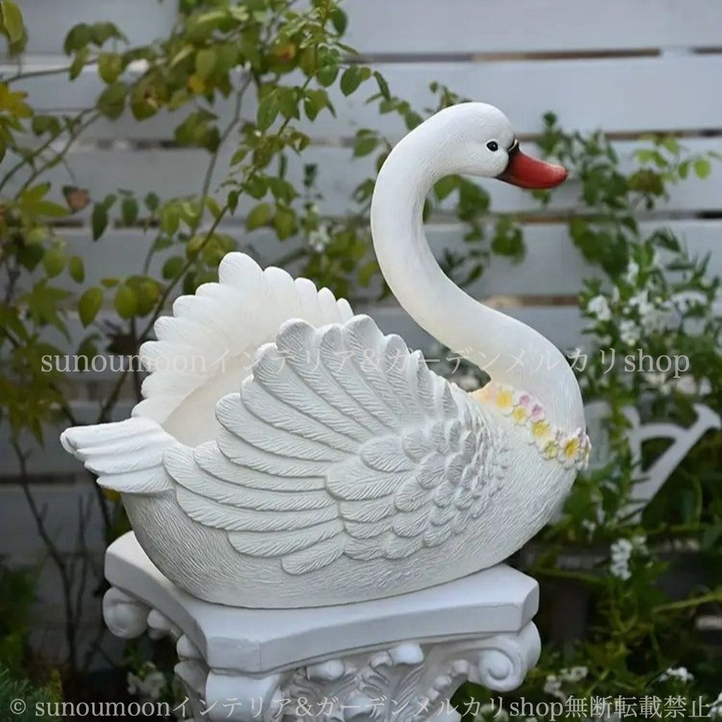 アニマル ホワイト ガーデンオブジェ プランター 白鳥 植木鉢 鳥 置物 ヴィンテージ調 エレガント ガーデニング 雑貨 ガーデン雑貨 ガーデンインテリア ガーデン インテリア 庭の装飾 お洒落 おしゃれ 4-7