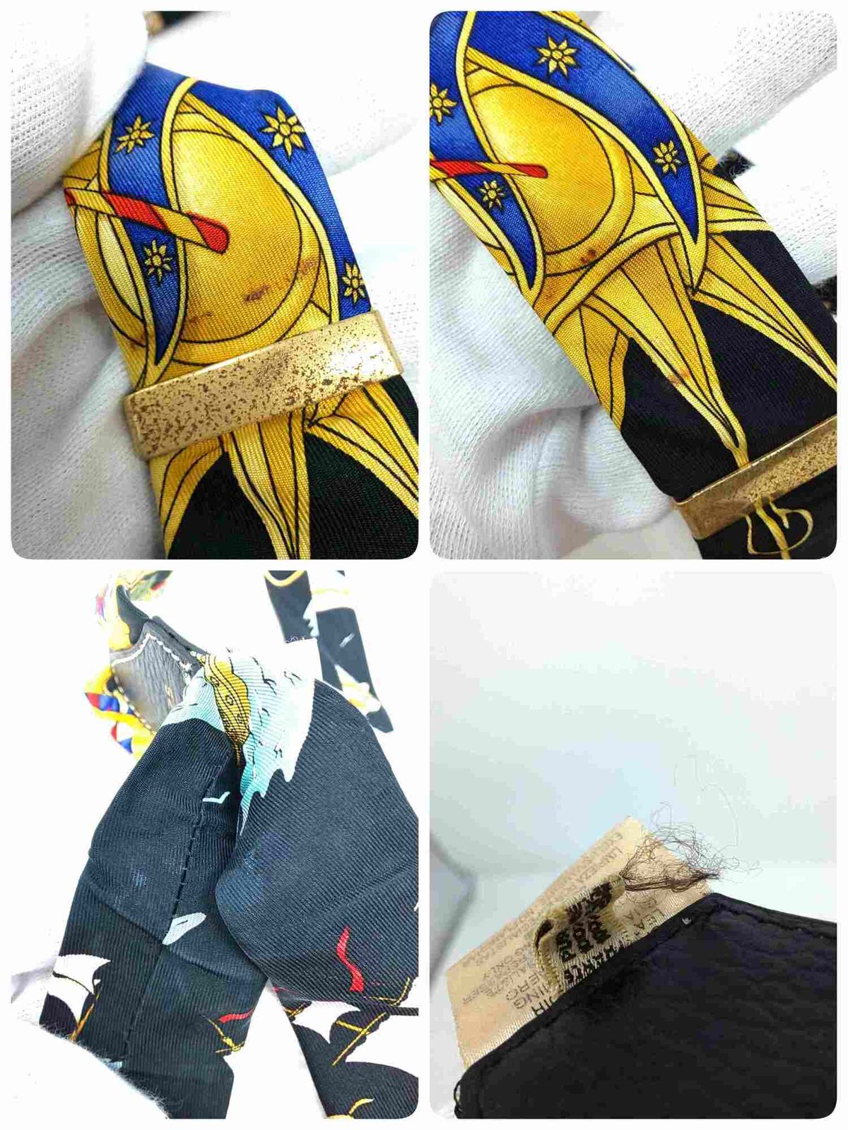 974 C-04 HERMES エルメス シルク サスペンダー レザー 総柄 ブラック系 ゴールド金具 ブランド 服飾雑貨