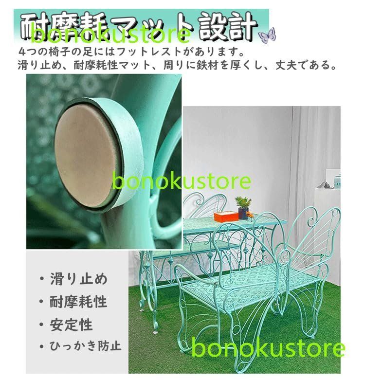 【製品仕様】:商品サイズ(約)-114×58×96cm(詳細は画像をご参照下さい)。 耐荷重:約300kg。材質:鉄。蝶をイメージしたデザインがお庭のインテリアやカフェテーブルとしてしっかり馴染みます。 【高品質素材】:高品質の鉄で作られた、環境に優しい鉄の芸術。高強度溶接プロ