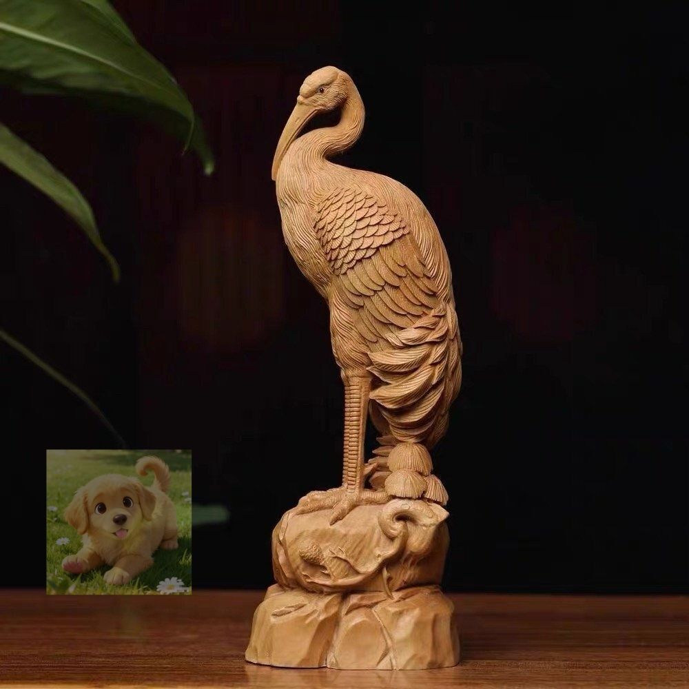 木彫 鶴 ツル 1対 細密彫刻 置物 飾り物 鷺 古美術
