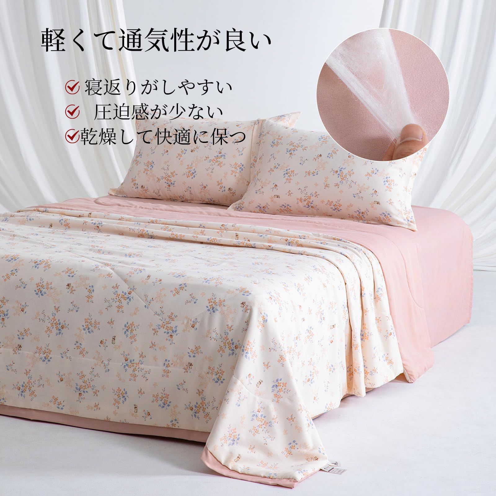 【軽くて通気性が良い】シルク自体が通気性と吸湿性に優れており、保温性も良いです。さらに、非常に軽いため圧迫感がなく、「やさしく温かい」体験を提供し、冬は暖かく、夏は涼しく、オールシーズン使用できます。