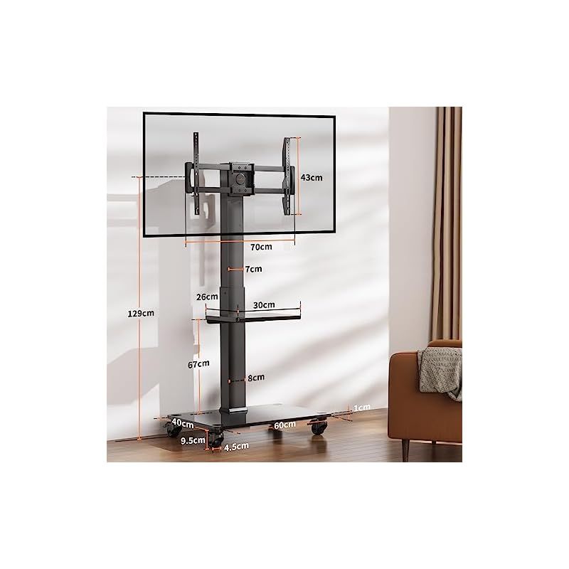 Perlegear テレビスタンド キャスター付き 壁寄せ tvスタンド ハイタイプ 移動式 tv stand テレビ台 壁掛け 37-75インチ対応 VESA 横200 600 mm 縦100~400 耐荷重40 kg 6段目高さ調節 左右 35度首振り 0