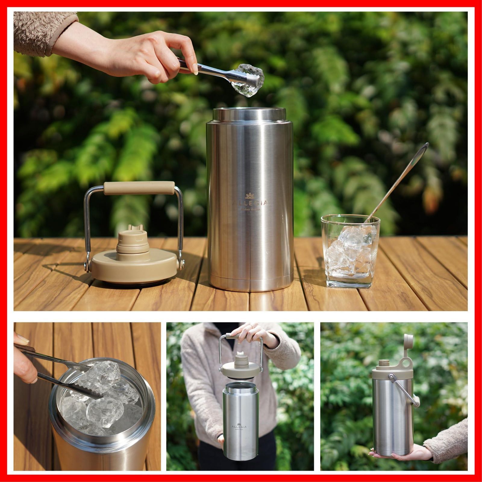 アレジア アイスコンテナ ジャグ アウトドア 真空 ボトル 保冷 1.8L 3.5L 氷 持ち運び 長時間 HOTも対応 ステンレス キャンプ 氷入れ AR-VICB ALLEGiA (B:1.8Lシルバー×ブラック)