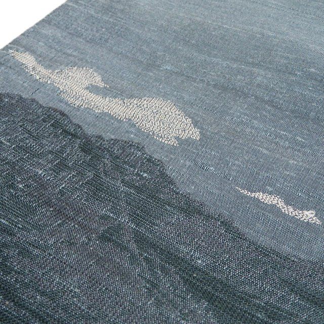 特選 京袋帯 名古屋帯 なごや帯 正絹 紬地 カジュアル 仕立て上がり 新田織物 風景 遠山 花 黒色 藍鼠色 多色 きもの北條 A 1276-14