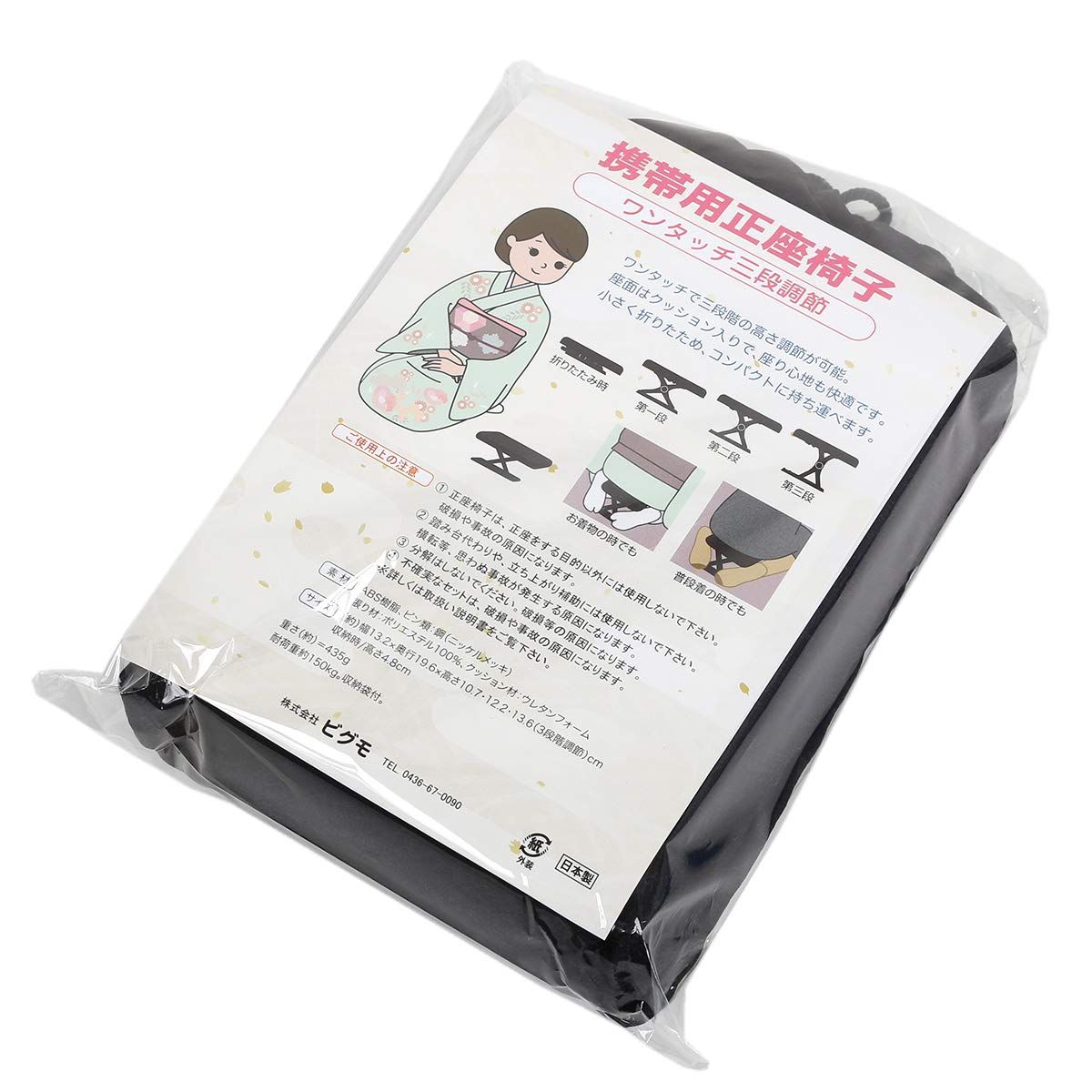 ワンタッチで三段調節可能な携帯用正座椅子です