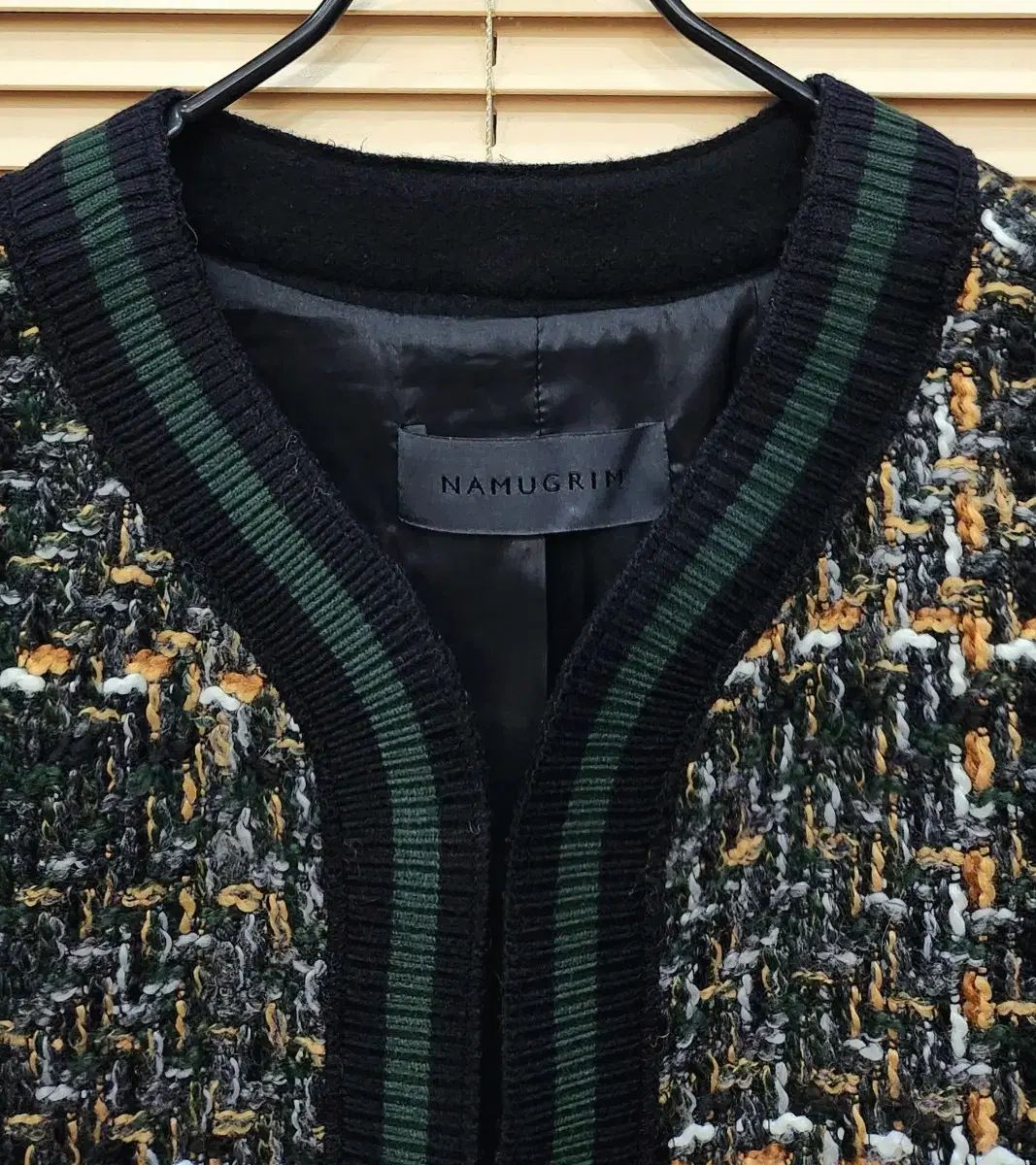 NAMUGRIMツイードジャケット 55サイズ出品。高級感のあるデザインで、スーツにもカジュアルにもよく合い、カラー合わせがとてもきれいです。