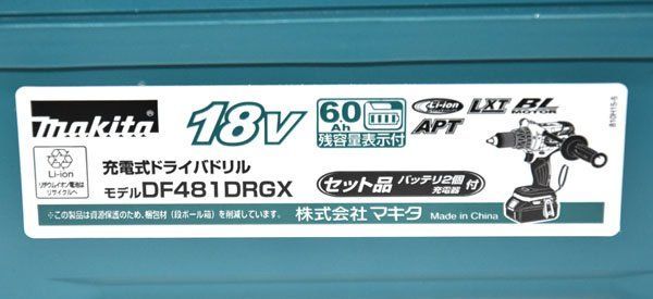 Makita マキタ 充電式ドライバドリル バッテリー BL 1860 B 充電器 DC 18 RC 付