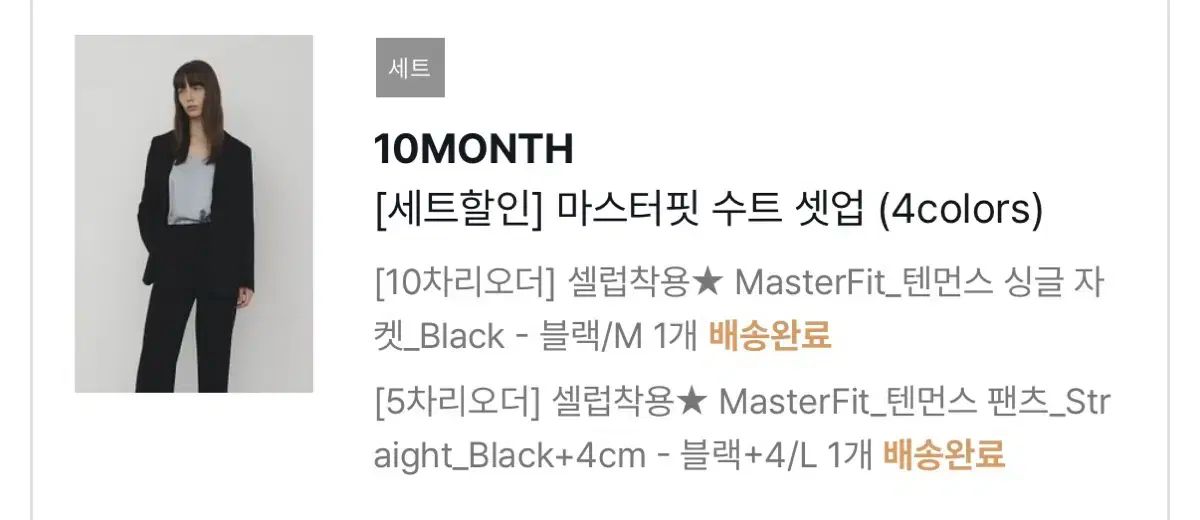 10 Month テンマンス マスターフィット スート セットアップ ブラック