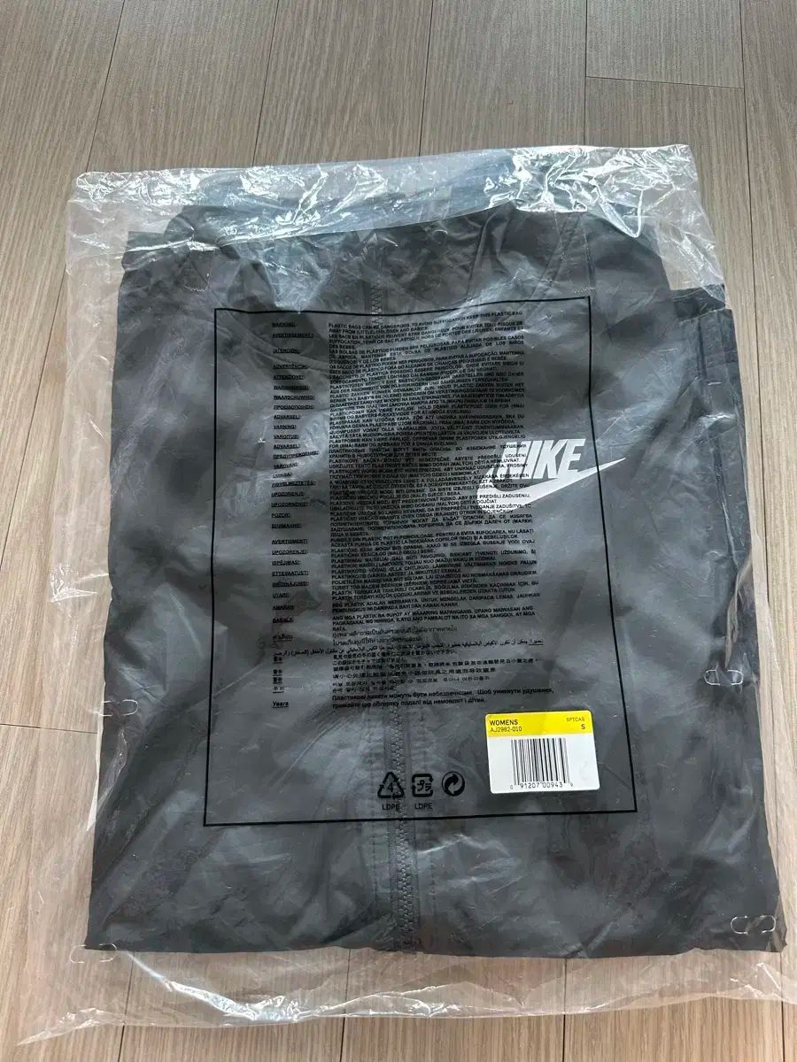 これは新品、未開封のナイキ女性用ウィンドランナー織物ジャケットです。薄手の素材でシーズン中も軽く着やすいです。サイズはSです。
