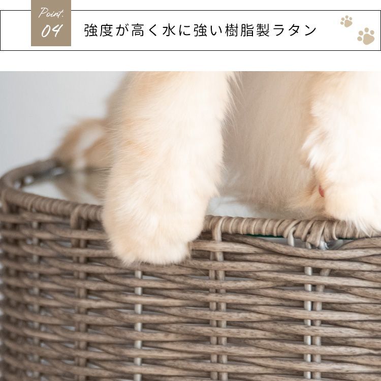 丈夫でおしゃれな樹脂製ラタンはリビングに馴染み、くつろぎながら猫ちゃんとの大切な時間を過ごすことができます。
