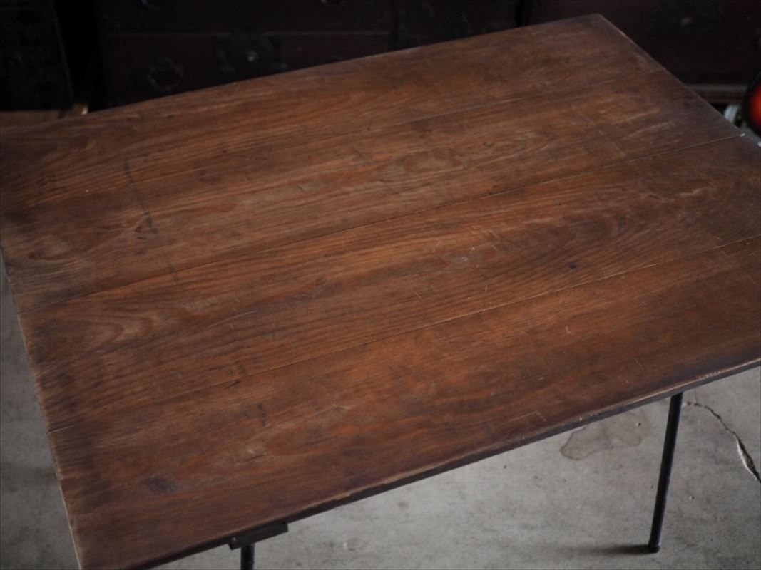 レトロ鉄脚無垢板リメイクテーブル 古録展 品番F 4496