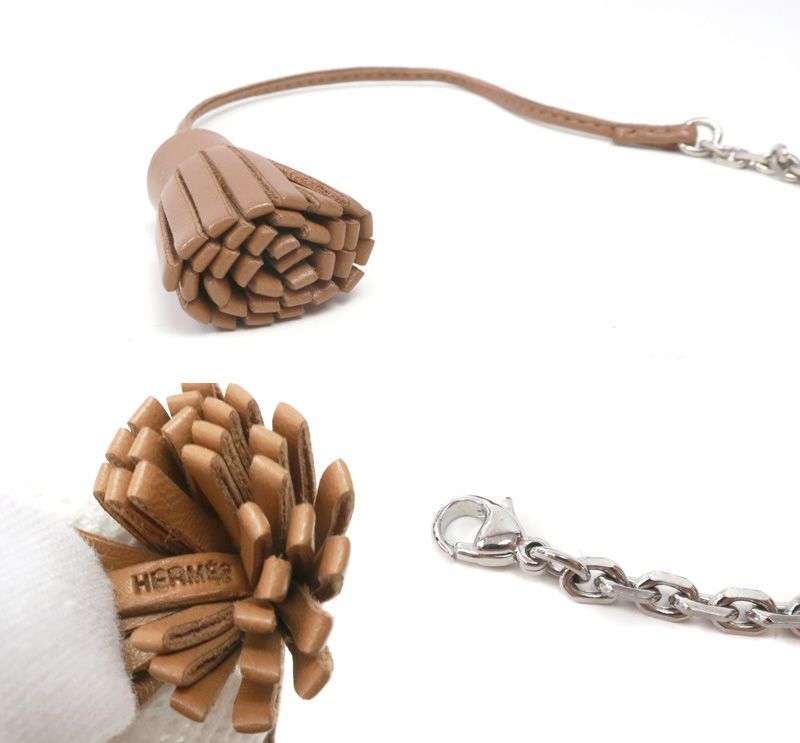 エルメス カルメンチータ 23 ブックマーク しおり チャーム ブラウン系 シルバー金具 HERMES ポンポン 33918