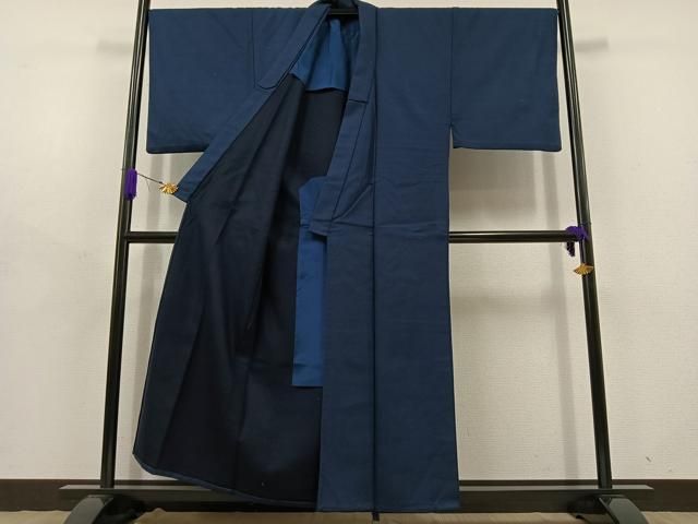 平和屋着物▽男性 色無地 単衣 青藍色 jh