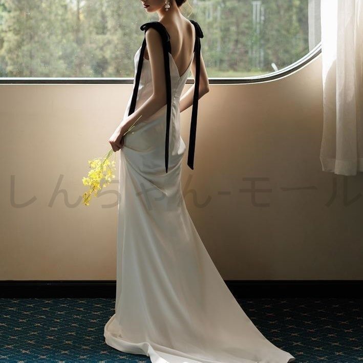 新しい ウェディングドレス リボンストラップ マーメイド