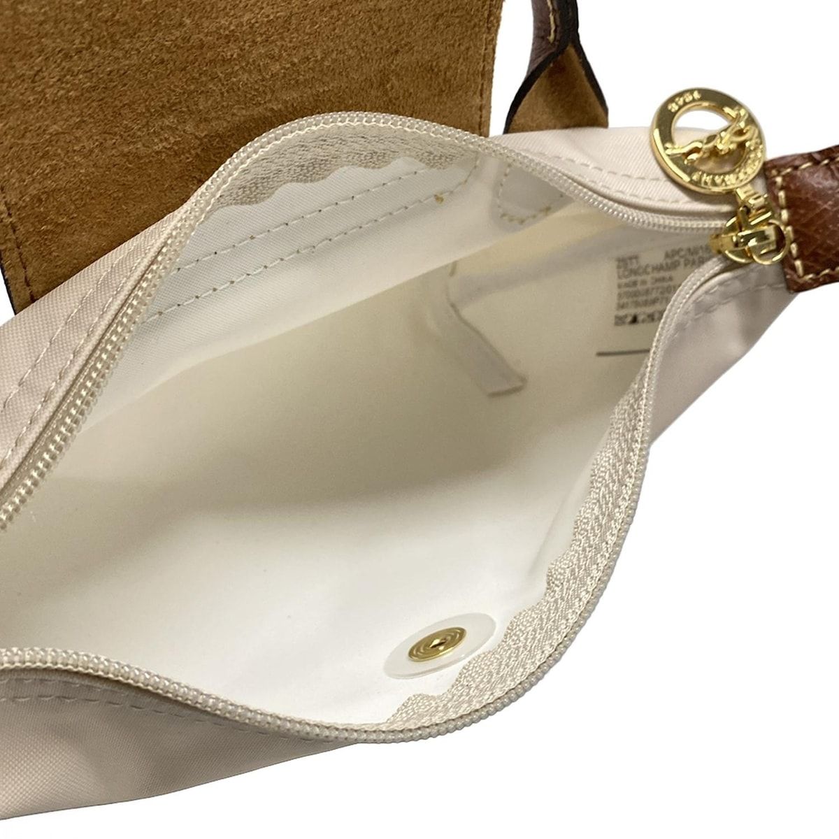 LONGCHAMP ロンシャン ポーチ - アイボリー×ブラウン ハンドル付きミニポーチ レザー