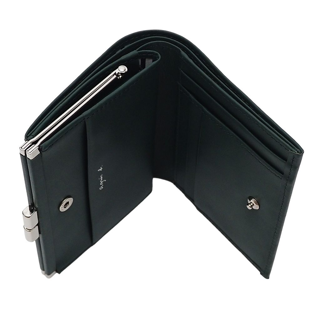未使用品訳あり agnes b. レザーウォレット がま口 財布 ダークグリーン アニエスべー レディース 5CH/J0610S/KCT06/