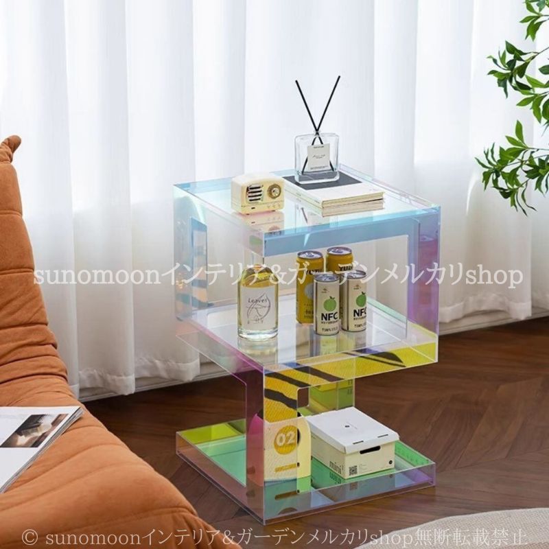 クリア サイドテーブル オーロラ レインボー アクリル 透明 カラフル スクエア かわいい おしゃれ ユニーク 個性的 インテリア 寝室 リビング ソファサイドテーブル エンドテーブル ディスプレイテーブル
