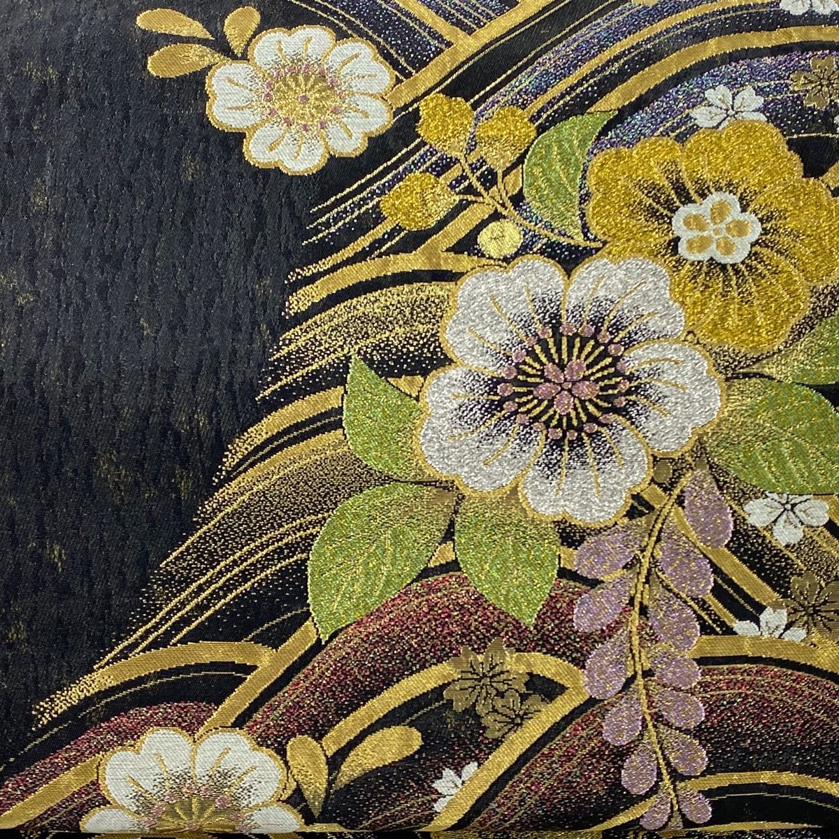 袋帯 秀品 やまと 辻が花 金銀糸 箔 黒 六通 正絹