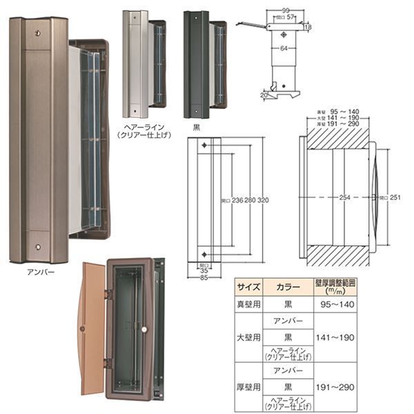 【サイズ・耐荷重】受口部:幅(mm)85高さ(mm)320取出し口開口寸法:幅(mm)57高さ(mm)281壁厚調整範囲141〜191mm